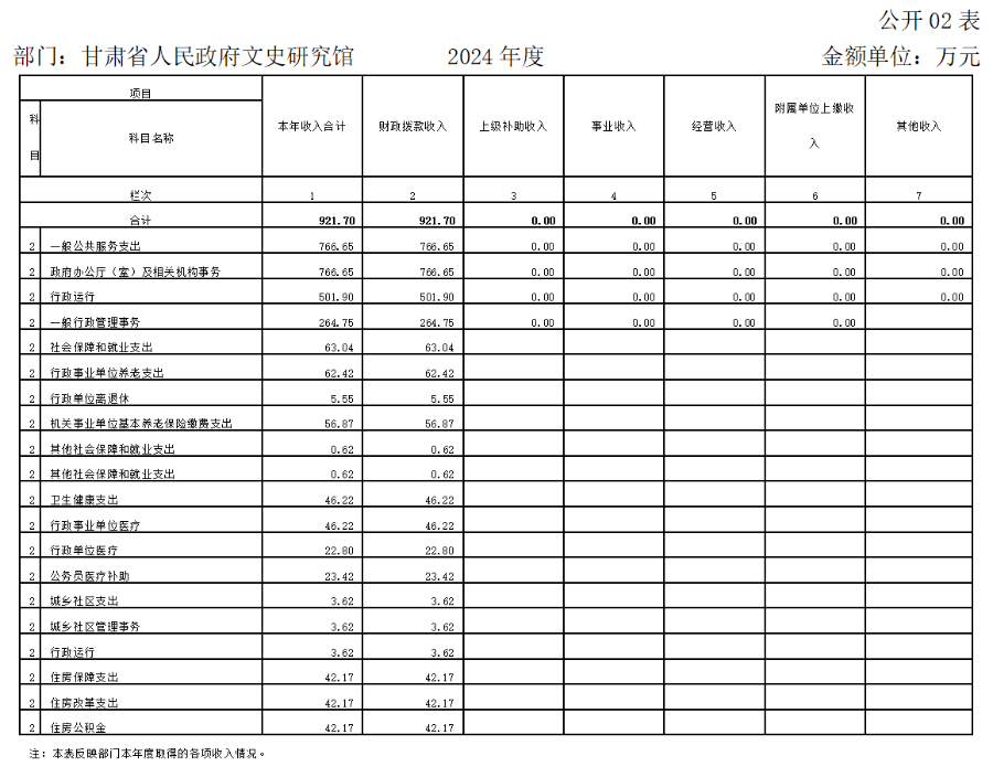 2024年度收入合计921.70万元,其中:财政拨款收入921.70万元,占100.00%。