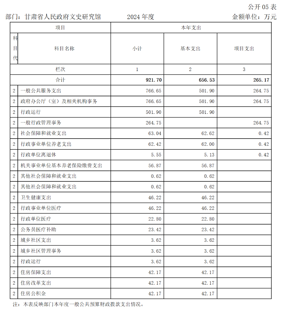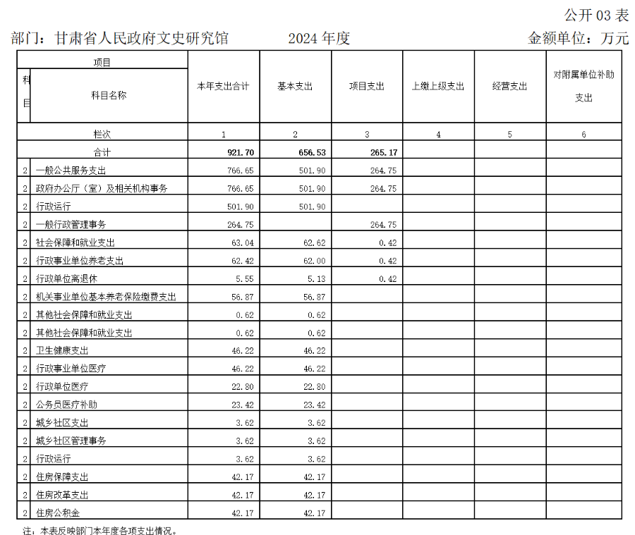 2024年度支出合计921.70万元,其中:基本支出656.53万元,占71.23%;项目支出265.17万元,占28.77%。