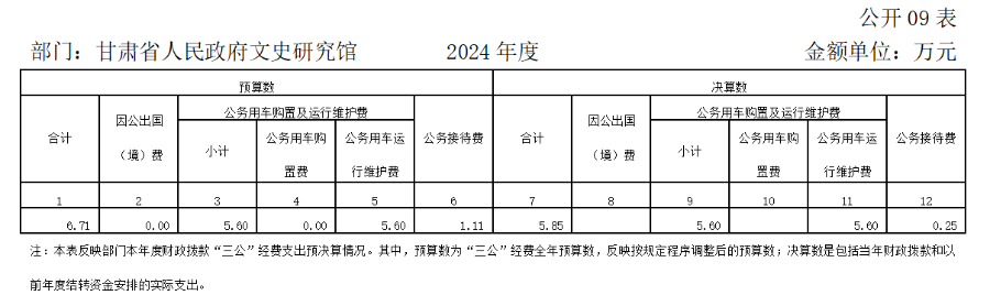 2024年度“三公”经费支出全年预算数为6.71万元,支出决算为5.85万元,决算数小于预算数的主要原因是没有产生因公出国出境费,公务接待活动较少。较上年决算数增加0.88万元,增长17.72%,主要原因是公务用车运行经费增加。